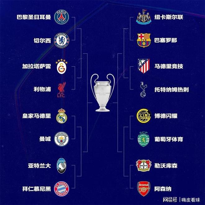 英超六强的对手出炉,切尔西遇上卫冕冠军巴黎圣日耳曼,利物浦遇上加拉塔萨雷,曼城遇上皇家马德里,这些球队都在上半区。下半区则有纽卡斯尔面对巴塞罗那,热刺面对马德里竞技,阿森纳面对勒沃库森。除了利物浦之外,所有对手都是来自五大联赛,欧冠真正的大戏将要拉开序幕。